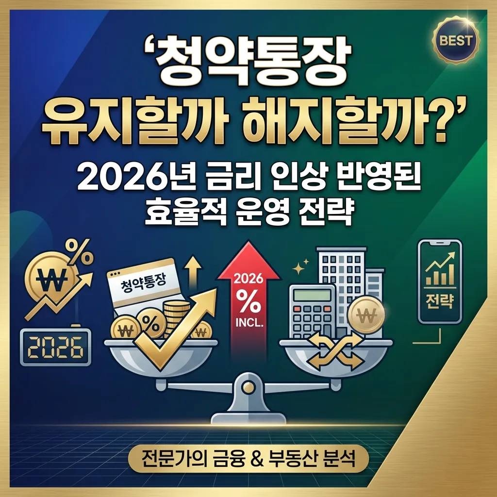 청약통장, 2026년 제도 변화와 금리 인상 시기에 맞춰 어떻게 운영해야 할까요? ISA 계좌 연계를 통한 절세 효과까지 고려한 현명한 유지 및 해지 전략을 총정리합니다. 내 집 마련의 꿈을 현실로 만들기 위한 필수 가이드!