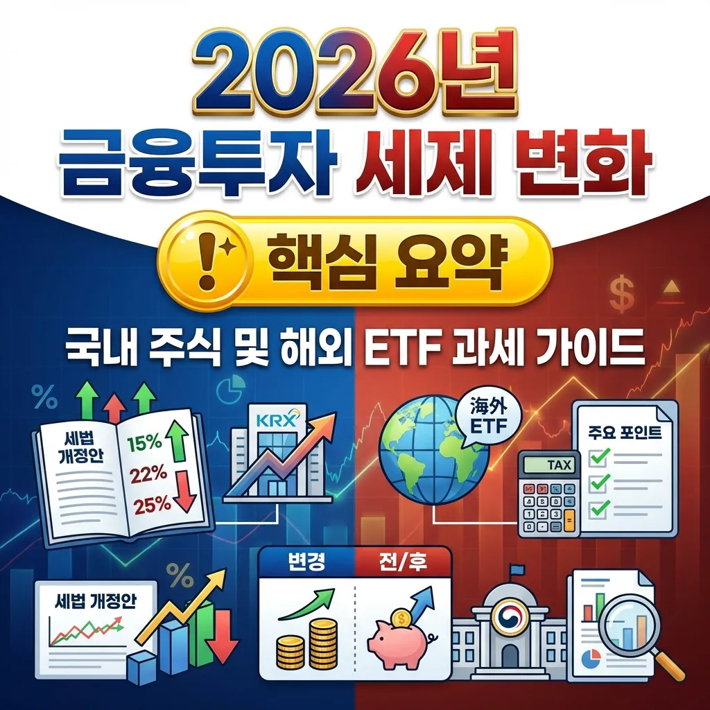 본 글에서는 2026년부터 시행되는 주요 금융투자 세제 변화를 국내 주식과 해외 ETF 중심으로 상세하게 분석하고, 개인 투자자가 놓치지 말아야 할 핵심 내용을 정리해 드립니다. 또한, 절세 계좌인 ISA(개인종합자산관리계좌)의 개편 내용과 효과적인 활용 방안, 그리고 변화하는 세제 환경 속에서 스마트한 투자 결정을 내릴 수 있도록 실질적인 절세 전략과 유의사항까지 종합적으로 다룰 것입니다.