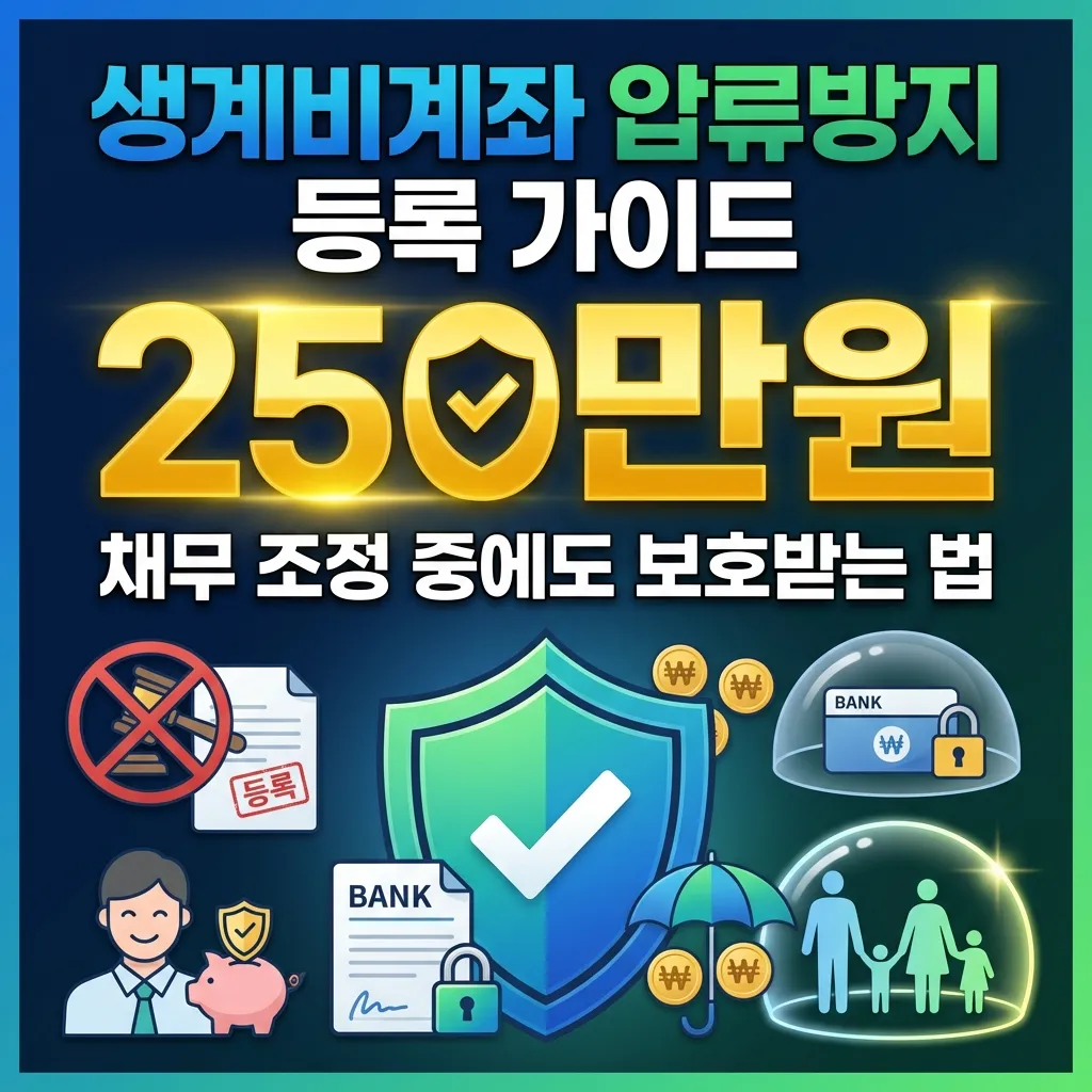 빚 때문에 통장 압류가 걱정되시나요? 채무 조정 중에도 최소한의 생활비를 안전하게 지키고 싶으신가요? 2026년 2월부터 시행되는 ‘생계비계좌’ 제도가 바로 당신을 위한 희망이 될 것입니다. 이 제도를 통해 누구나 월 최대 250만원까지 압류로부터 보호받을 수 있게 됩니다.
